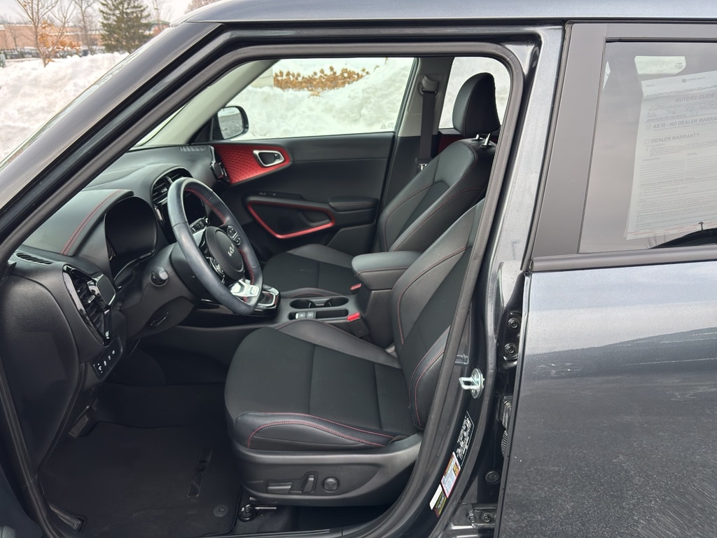 The vehicle utilizes collision avoidance to enhance safety by automatically detecting and evading potential accidents. Start it from inside with remote start. See what's behind you with the back up camera on this 2023 Kia Soul . You'll never again be lost in a crowded city or a country region with the navigation system on the Kia Soul. It keeps you comfortable with Auto Climate. The leather seats in this model are a must for buyers looking for comfort, durability, and style. Apple CarPlay: Seamless smartphone integration for this unit - stay connected and entertained on the go! This vehicle offers Android Auto for seamless smartphone integration. Bluetooth technology is built into this model, keeping your hands on the steering wheel and your focus on the road. The Kia Soul is front wheel drive. Set the temperature exactly where you are most comfortable in this Kia Soul. The fan speed and temperature will automatically adjust to maintain your preferred zone climate.