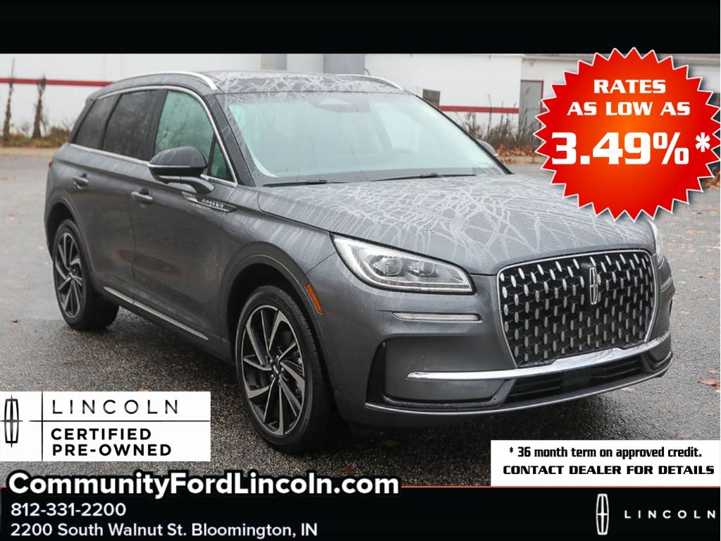 Discover exceptional value with this 2023 Lincoln Corsair Reserve, located in Bloomington, IN. With just 6,879 miles, this Lincoln Corsair offers low-mileage reliability and luxury at the best price in the area. Powered by an efficient 2.0L 4-cylinder gasoline engine and FWD, it delivers refined performance and excellent fuel economy for daily commutes and weekend adventures. Step inside to enjoy premium comfort and modern convenience. The Heated Steering Wheel keeps you cozy on chilly drives, while the Back-Up Camera and Rear Parking Sensors provide confidence when maneuvering in tight spaces. Rain Sensing Wipers automatically adjust to changing conditions for safer visibility, and Hands Free Bluetooth makes calls and streaming effortless and distraction-free. This Reserve model blends upscale design with practical features, making it ideal for drivers seeking a sophisticated compact SUV without the new-vehicle price. Routine maintenance has been performed and the low mileage means years of dependable service ahead. Located in Bloomington, IN, this 2023 Lincoln Corsair Reserve is priced to move â" offering the best price for a low-mileage luxury crossover in the market. Contact us today to schedule a test drive and experience the balance of comfort, technology, and value firsthand.