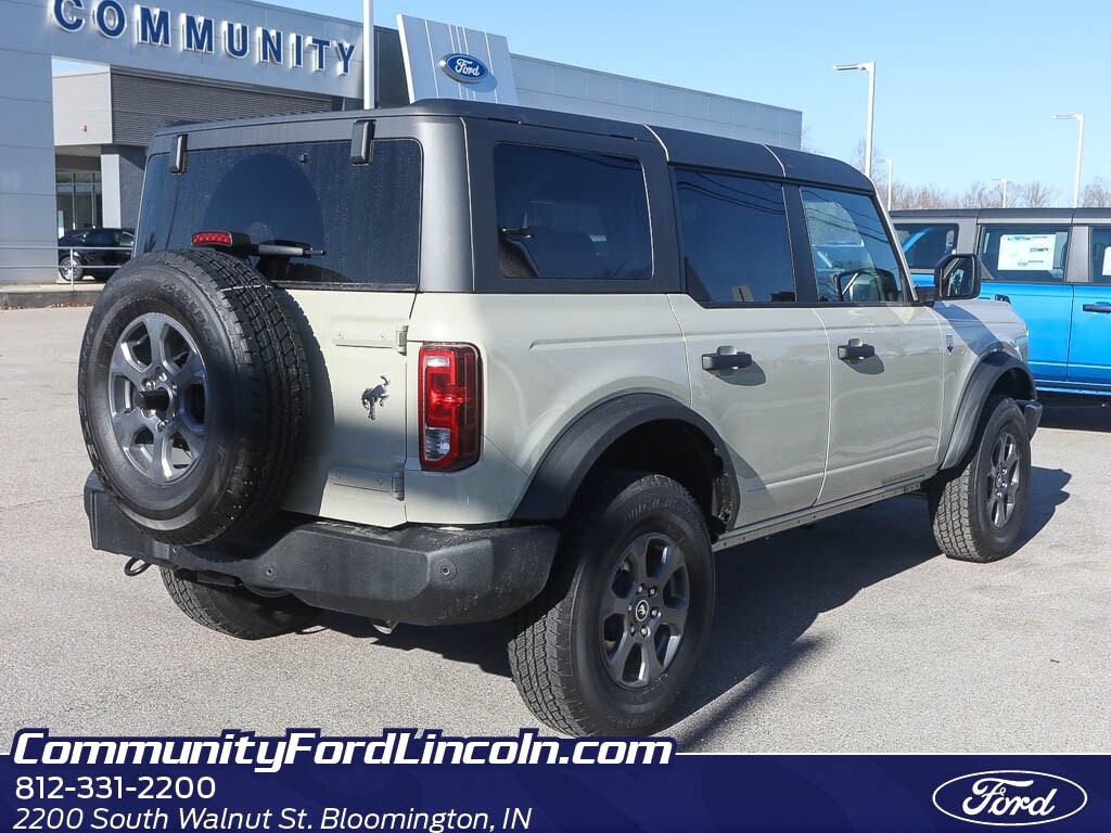 2025 Ford Bronco Big Bend 4WD â" 4 Cyl, 2.3L Gasoline â" Bloomington, IN Ready for weekend trails and daily drives, this 2025 Ford Bronco Big Bend combines rugged capability with modern convenience. Powered by a fuel-efficient 2.3L 4-cylinder engine and equipped with 4WD, it delivers confident handling on varied terrain while remaining economical for everyday use. This Ford Bronco is loaded with must-have features: Hands Free Bluetooth for seamless calling and audio, built-in Navigation to keep you on course, Remote Start for comfort in any season, Rear Parking Sensors to assist tight maneuvers, and Cross-Traffic Alert for safer backing out of spaces. The Big Bend trim balances off-road capability with driver-friendly tech and comfort, offering versatile seating and a commanding driving position. Whether you're heading to the hills or commuting around Bloomington, IN, this Ford Bronco offers a strong blend of style, performance, and safety features. We're offering the best price on this model â" competitive and transparent so you can buy with confidence. Contact us to schedule a test drive, confirm current inventory, or get a personalized financing quote. Act now to secure this 2025 Ford Bronco Big Bend 4WD at the best price available in Bloomington, IN.