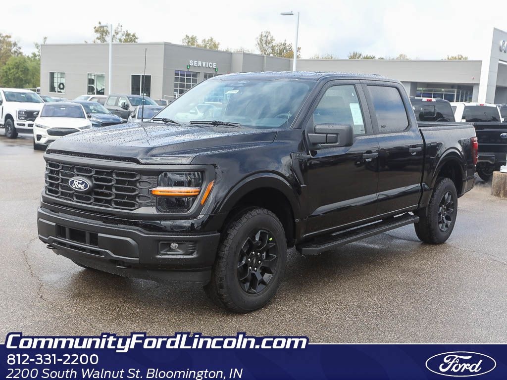 2025 Ford F-150 STX 4WD â" Bloomington, IN Experience capability and comfort with this 2025 Ford F-150 STX featuring a responsive V6 2.7L gasoline engine and rugged 4WD for confident performance in any season. Located in Bloomington, IN, this Ford F-150 combines utility and technology with an Off-Road Package that enhances traction, ground clearance, and durability for weekend adventures or tough jobsite demands. Inside, the cabin is designed for modern connectivity and convenience. Apple CarPlay and Android Auto keep your phone integrated for navigation, music, and hands-free communication. Remote Start lets you warm or cool the truck before stepping outside, and Rear Parking Sensors provide extra assurance when maneuvering in tight spaces or backing into a trailer. The STX trim balances value and features with a bold exterior stance, durable bed, and towing capability suited to trailers, equipment, and recreational gear. Safety and driver assistance options support confidence on long drives and daily commutes. Whether hauling, towing, or exploring off the beaten path with the Off-Road Package, this Ford F-150 is engineered to work harder and smarter. This vehicle is competitively priced and currently offered at the best price in the area. Stop by Bloomington, IN to test drive this Ford F-150 STX and see how it meets your performance, comfort, and connectivity needs.