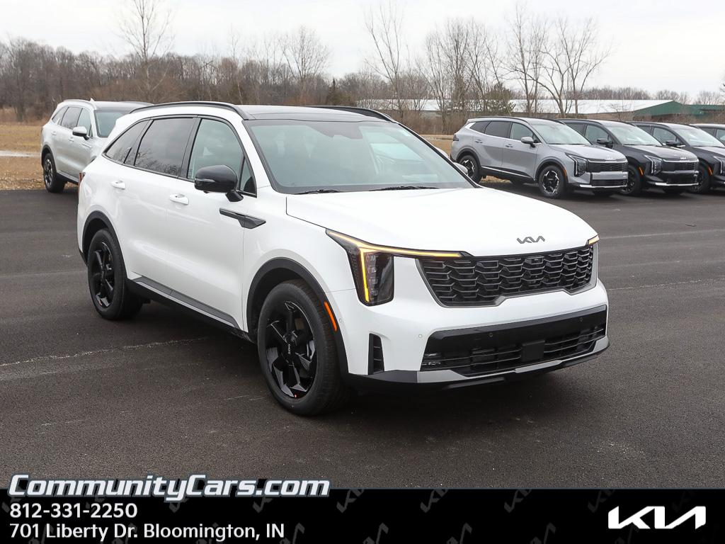Experience premium hybrid performance with this 2026 Kia Sorento Hybrid X-Line SX Prestige AWD, located in Bloomington, IN. Powered by a responsive 4-cylinder, 1.6L Full Hybrid Electric (FHEV) powertrain, this Sorento delivers exceptional fuel efficiency while offering confident all-wheel-drive traction for year-round driving. The X-Line SX Prestige trim blends rugged style with luxury, making it ideal for families and drivers who demand versatility and comfort. Inside, enjoy refined leather seats and a driver-focused cabin with advanced tech like built-in Navigation and seamless Apple CarPlay integration for effortless connectivity. Safety and convenience features include Lane Keep Assist and a heated steering wheel for cold mornings, making every trip more relaxed and secure. The thoughtfully designed interior provides ample cargo space and flexible seating to handle daily errands, weekend getaways, and everything in between. This 2026 Kia Sorento Hybrid is available now in Bloomington, IN, and priced to competeâ"offering the best value on the market for this model and trim. Whether you prioritize fuel savings, advanced safety systems, or upscale amenities, this Kia Sorento Hybrid X-Line SX Prestige delivers. Schedule a test drive today to experience the exceptional ride quality, modern features, and unbeatable price for yourself. Drive home a smarter, more efficient SUV without compromise.