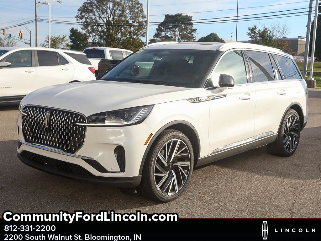 Discover refined luxury with this 2025 Lincoln Aviator Reserve AWD, powered by a robust V6 3.0L gasoline engine. Located in Bloomington, IN, this Lincoln Aviator Reserve delivers confident performance, confident handling, and premium comfort for drivers who demand style and substance. The AWD drivetrain and responsive V6 provide smooth acceleration and composed road manners, while advanced technology enhances every journey. Inside, enjoy a thoughtfully appointed cabin with high-quality materials and intelligent convenience features. Stay connected with Apple CarPlay and Android Auto integration, and make hands-free calls or stream music using Hands-Free Bluetooth. Remote Start adds everyday practicality, letting you warm up or cool down the interior before you step in. Adaptive Cruise Control improves highway driving with smooth, automated speed adjustments for a safer, less fatiguing ride. This Lincoln Aviator Reserve combines sophisticated styling, modern safety features, and an intuitive infotainment suite to create a refined driving experience. Whether commuting through town or taking longer trips, the Lincoln Aviatorâs balance of power and comfort stands out. Located in Bloomington, IN, this vehicle is competitively priced and represents the best price available for this model in the area. Schedule a test drive today to experience the blend of performance, technology, and luxury that defines the 2025 Lincoln Aviator Reserve.
