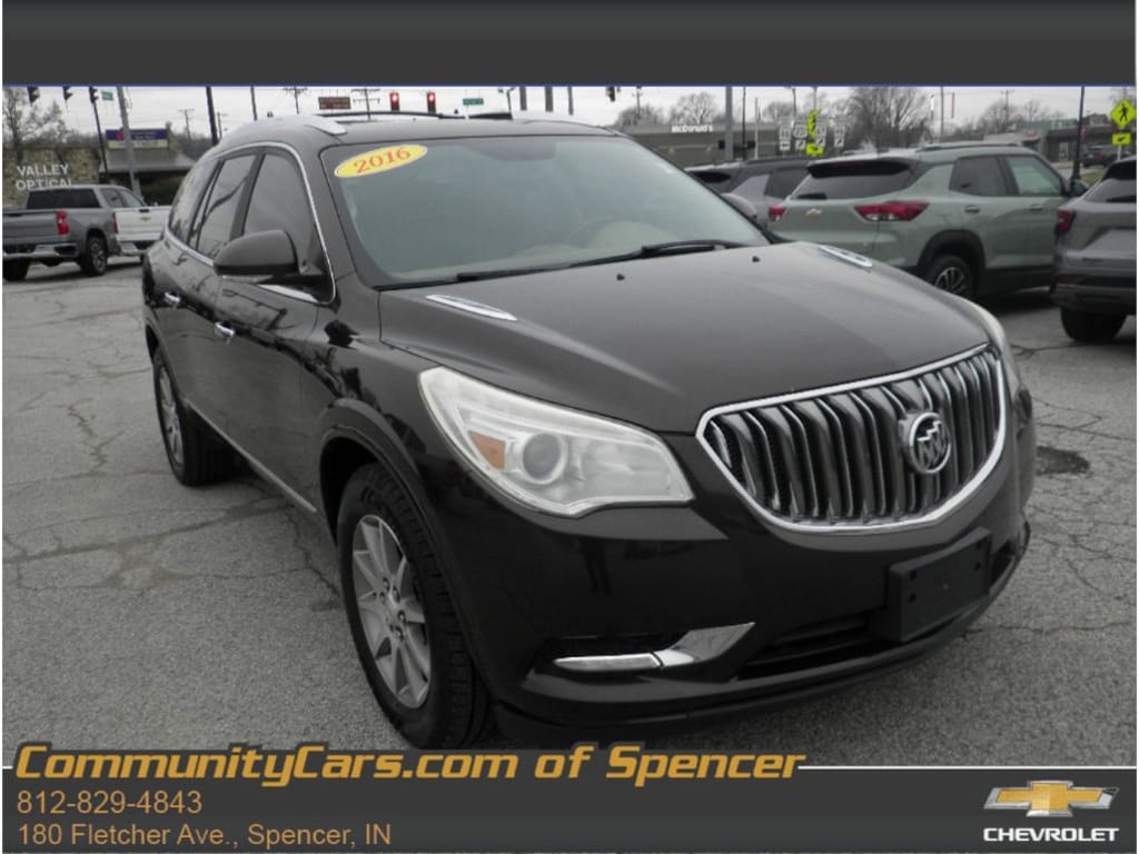 Premium 2016 Buick Enclave Leather AWD Spencer, IN Best Price! Looking for a refined, family-ready SUV with upscale comfort and confident all-wheel drive? This 2016 Buick Enclave Leather with a smooth 3.6L V6 gasoline engine delivers power, space, and luxury without breaking the bank. Located in Spencer, IN, this Buick Enclave is priced to sell and offers the best value in the area. Comfort and convenience are front and center with sumptuous leather seats and a heated steering wheel that make every drive enjoyable year-round. Xenon lights ensure excellent nighttime visibility, while the back-up camera provides extra confidence when parking or maneuvering in tight spots. Hands-free Bluetooth keeps you connected and safe, so calls and audio streaming are effortless. Under the hood, the 3.6L V6 provides strong acceleration and composed highway cruising, while the AWD system enhances traction in rain or snow for reliable handling through Indiana seasons. The roomy third-row seating and generous cargo space make this Buick Enclave ideal for families, road trips, or hauling gear. This Buick has been carefully maintained and is competitively priced to be the best deal in Spencer, IN. If you want a luxurious-feeling SUV with modern features, proven performance, and all-weather capability, this 2016 Buick Enclave Leather AWD is the smart choice. Contact us to schedule a test drive and see why this vehicle stands out as the top-priced value in town.