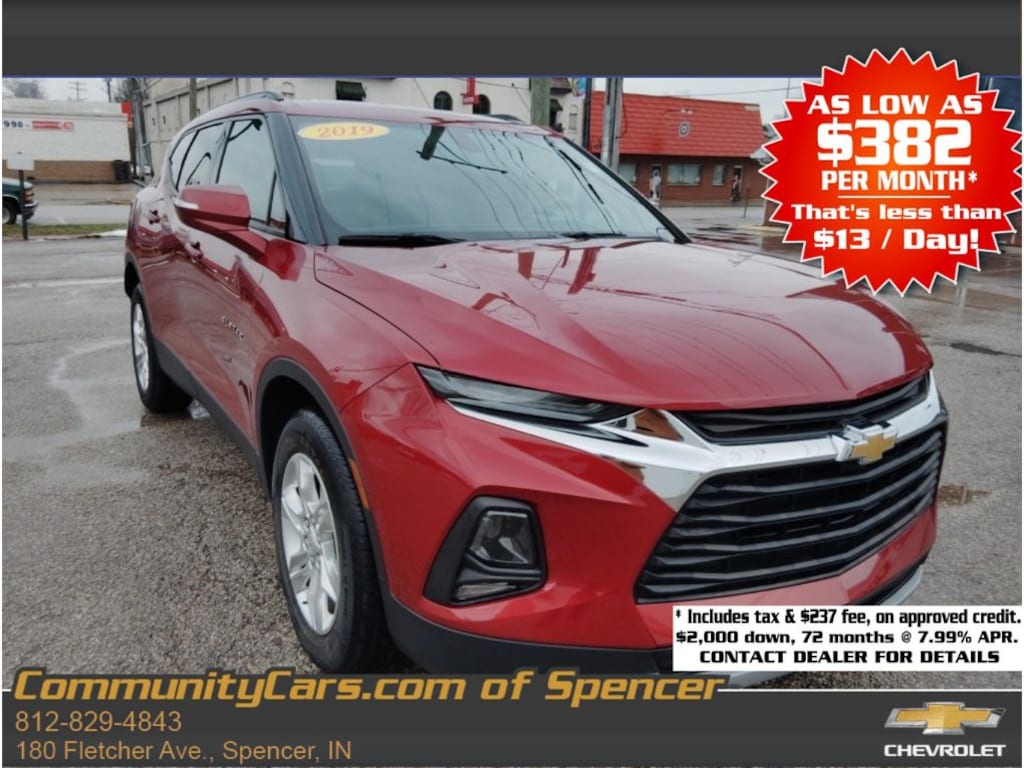 Local 1 owner vehicle purchased here new with ultra LOW miles! Heated seats, remote start! 2019 Chevrolet Blazer Base w/2LT 23140 miles AWD V6 3.6L Spencer, IN Drive home today in this low-mileage 2019 Chevrolet Blazer Base w/2LT, located in Spencer, IN. Powered by a responsive V6 3.6L gasoline engine and equipped with AWD, this Chevrolet Blazer delivers confident handling and strong performance in all road conditions. With just 23,140 miles, this SUV offers exceptional remaining life and reliability for daily commutes and weekend adventures. You'll appreciate modern conveniences like Remote Start for quick climate control, Automatic Climate Control to keep every ride comfortable, and Android Auto for seamless smartphone integration and navigation. Safety features include a Back-Up Camera and Rear Parking Sensors to make parking and maneuvering simple and secure. This Chevrolet Blazer is priced to move the best price in the area giving you outstanding value for a well-maintained, low-mileage AWD SUV with a powerful V6 engine. Whether you need space for family, cargo flexibility, or a capable vehicle for varied weather, this Chevrolet Blazer checks all the boxes. Contact us to schedule a test drive in Spencer, IN, and see why this 2019 Chevrolet Blazer Base w/2LT with 23,140 miles is the smart choice for quality, performance, and value.