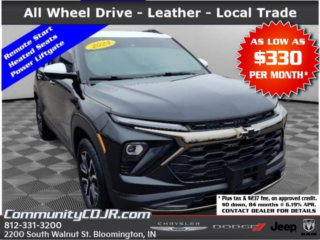 2024 Chevrolet TrailBlazer ACTIV AWD â" 29,980 miles â" Bloomington, IN Find exceptional value with this 2024 Chevrolet TrailBlazer ACTIV, now available in Bloomington, IN. Powered by a fuel-efficient 3-cylinder 1.3L gasoline engine and equipped with all-wheel drive, this Chevrolet TrailBlazer delivers confident handling in varied road and weather conditions while keeping fuel costs down. With only 29,980 miles, this SUV offers low mileage for its model year, giving you years of reliable driving ahead. This ACTIV trim combines rugged style with comfort and technology. Leather seats provide a premium cabin feel, while Hands-Free Bluetooth keeps you connected and safe on the go. Advanced driver assistance features include Lane Keep Assist and Lane Departure Warning to help maintain lane position, plus Rear Parking Sensors to simplify tight parking maneuvers. The Chevrolet TrailBlazer's compact yet versatile design makes it ideal for city streets and weekend adventures. We're offering this Chevrolet TrailBlazer at the best price in the areaâ"an excellent opportunity for budget-conscious buyers seeking a feature-rich, low-mileage SUV. Located in Bloomington, IN, this vehicle is ready for test drives and immediate purchase. Schedule a viewing or request more details to see why this 2024 Chevrolet TrailBlazer ACTIV AWD is the smart choice for style, safety, and value. Competitive pricing and low mileage won't last long.