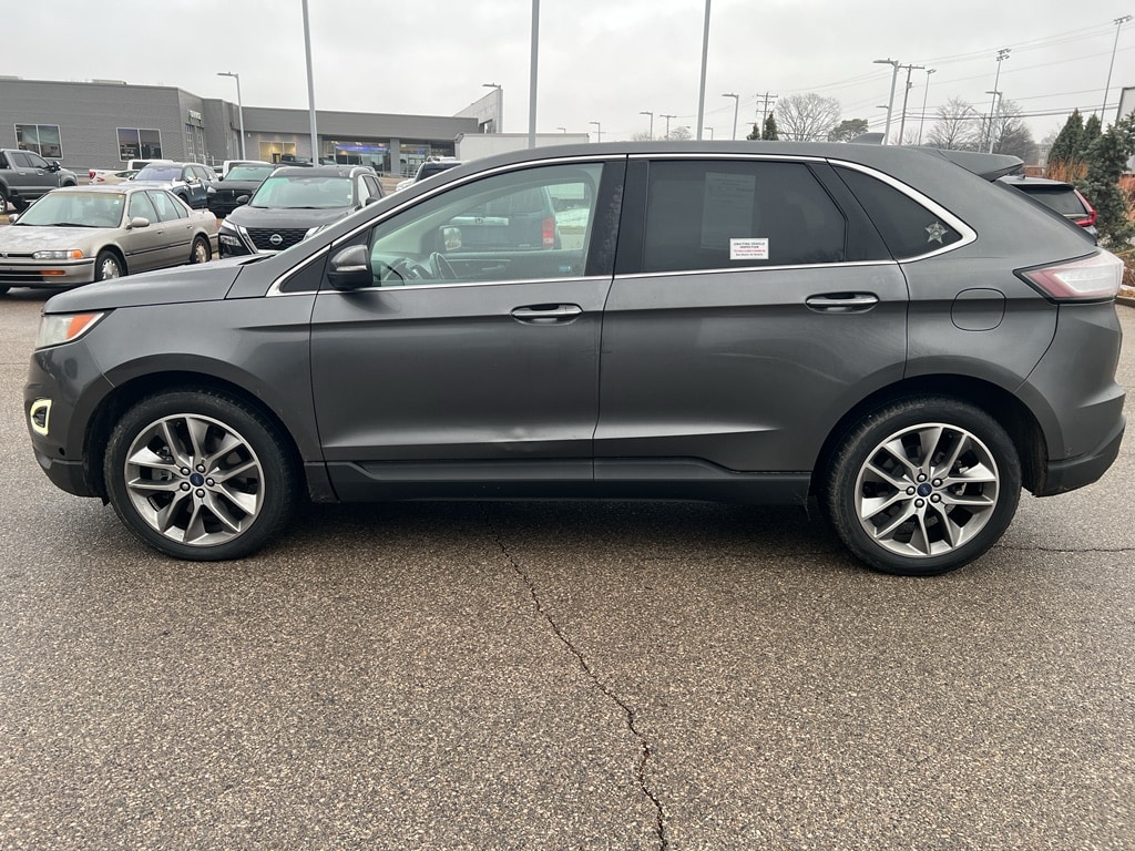 2015 Ford Edge Titanium AWD â" Powerful V6, Premium Features, Best Price in Bloomington IN This 2015 Ford Edge Titanium offers a confident driving experience with its smooth 3.5L V6 gasoline engine and reliable all-wheel drive, ideal for Indiana roads and seasonal weather. The Titanium trim adds upscale comfort and convenience, featuring leather seats and automatic climate control that keep every trip comfortable for driver and passengers. Tech-friendly amenities include Hands-Free Bluetooth for safe, connected calls and audio streaming, XM Radio for expanded entertainment options, and a Back-Up Camera to assist with parking and tight maneuvers. The cabin balances luxury and practicality with durable materials and user-friendly controls that make daily driving effortless. Safety-focused engineering and AWD capability provide traction and stability in rain, snow, and varying road conditions, while the V6 delivers brisk acceleration for highway cruising and passing. This Ford Edge Titanium combines a refined ride with useful utility, making it a smart choice for families, commuters, and drivers who value comfort without sacrificing performance. Located in Bloomington IN, this vehicle is competitively priced and advertised as the best price in the area. If you're looking for a well-equipped, dependable crossover with premium appointments and strong AWD capability, this 2015 Ford Edge Titanium is ready for a test drive. Contact us to schedule a viewing or to get more details.