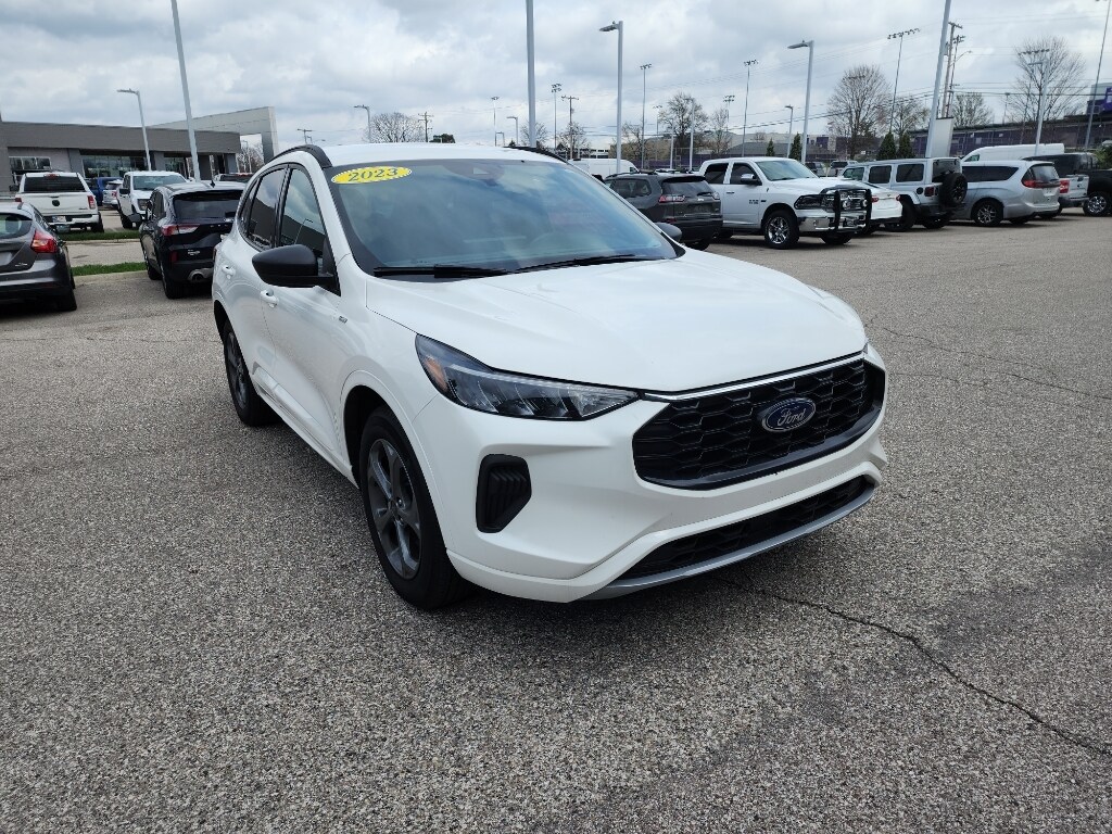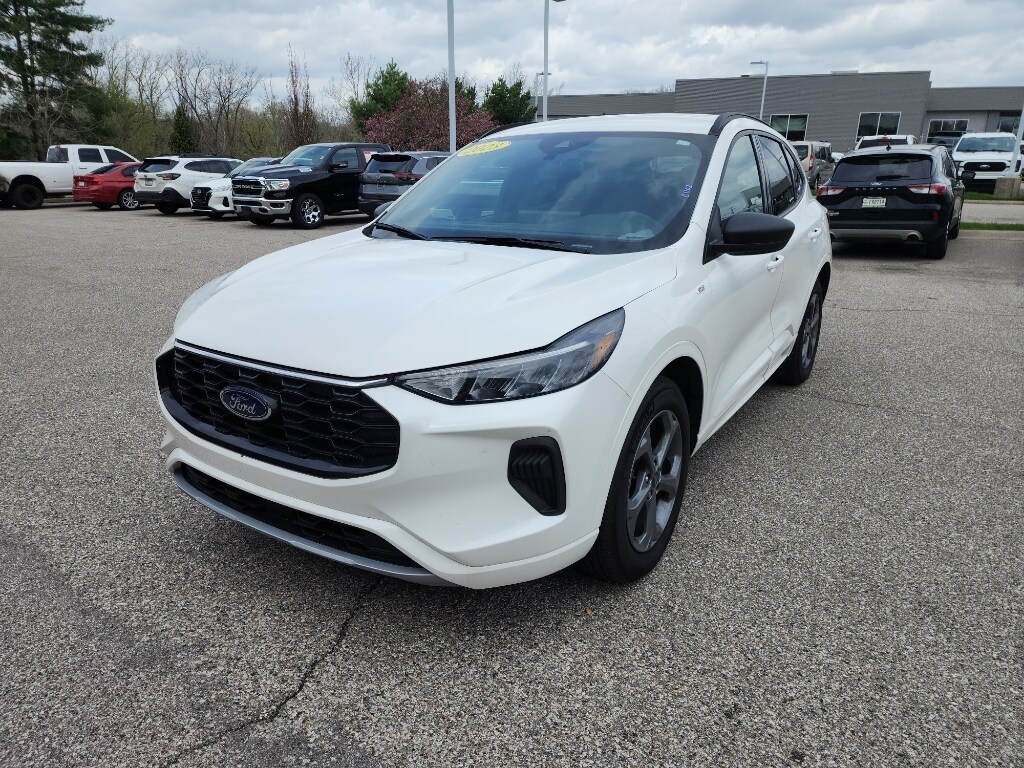 2023 Ford Escape ST-Line AWD â" low mileage, best price in Bloomington, IN. This stylish compact SUV pairs sporty ST-Line design with efficient performance from a turbocharged 3-cylinder 1.5L gasoline engine and intelligent all-wheel drive, delivering confident handling and impressive fuel economy. With only 9,310 miles, this Ford Escape offers exceptional value and long-term dependability for drivers seeking like-new condition without new-car pricing. Inside, enjoy a tech-forward cabin featuring Android Auto and Hands-Free Bluetooth for seamless smartphone integration and safer, connected commutes. The Back-Up Camera enhances visibility when parking and maneuvering, while Adaptive Cruise Control adds convenience and reduces fatigue on highway drives. Cold-weather comfort comes from the Heated Steering Wheel, keeping your hands warm on chilly mornings. Exterior ST-Line cues give this Ford Escape a sportier stance and premium presence on Bloomington roads, while AWD provides traction for seasonal changes. This vehicle is priced competitively-presented as the best price for similar low-mileage examples in the area-making it an ideal choice for budget-conscious buyers who value quality and features. Well-maintained and ready for immediate delivery in Bloomington, IN, this 2023 Ford Escape ST-Line AWD combines efficiency, technology, and comfort. Contact us to schedule a test drive and experience this low-mileage Ford Escape for yourself.