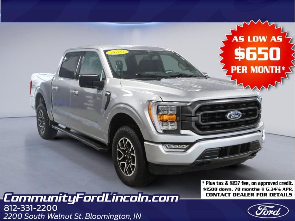 Drive home in confidence with this 2023 Ford F-150 XLTâ"now available in Bloomington, IN. This rugged 4WD pickup pairs a responsive 2.7L V6 gasoline engine with just 20,585 miles, offering low mileage and years of dependable performance ahead. Built for work and weekend adventures, the Ford F-150 XLT balances power, efficiency, and comfort. You'll find modern tech like a Back-Up Camera for safer parking, Hands Free Bluetooth for seamless calling and audio, Remote Start for convenience, and Android Auto plus Navigation to keep you connected and on course. The spacious cabin and practical bed make hauling gear simple, while 4WD ensures capability in year-round road conditions. This 2023 Ford F-150 XLT is competitively priced and confidently listed as the best price in the areaâ"an exceptional value for drivers seeking low-mileage trucks with premium features. Located in Bloomington, IN, this Ford F-150 is ready for a test drive today. Whether you need a reliable daily driver, a capable work truck, or a comfortable family hauler, this Ford F-150 delivers. Contact us to schedule your visit and see why this 2023 Ford F-150 XLT is the smart choice for quality, performance, and value in Bloomington. Don't miss this low-mileage pickup at the best price.