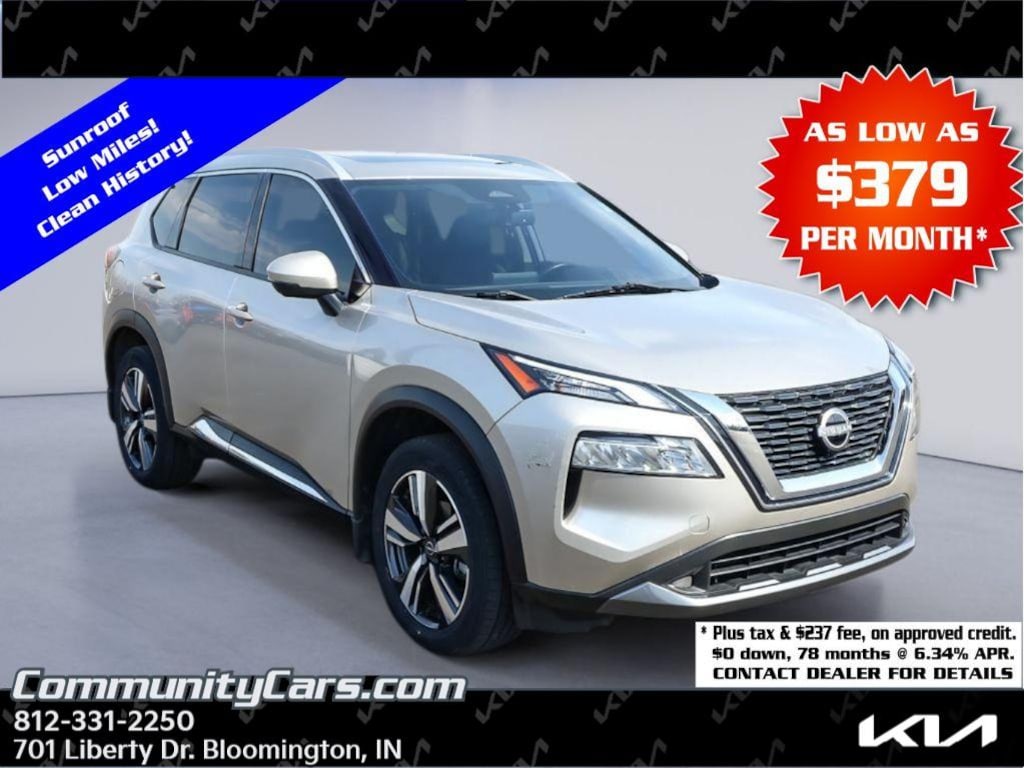 Discover this 2023 Nissan Rogue SL AWD, a stylish and capable crossover located in Bloomington, IN. With just 28,816 miles, this low-mileage Nissan Rogue delivers excellent value and dependable performance from its efficient 3-cylinder, 1.5L gasoline engine paired with all-wheel drive for confident handling in any season. Priced to sell, this Nissan Rogue SL offers the best price in the area for buyers seeking a premium-feeling, budget-friendly SUV. Inside, enjoy upscale comfort with leather seats and a heated steering wheel for cold-weather convenience. The SL trim adds convenience and safety features including HID headlamps for improved nighttime visibility, remote start for quick climate control, and hands-free Bluetooth for seamless phone and audio connectivity on the go. The cabin is thoughtfully designed for daily commuting or weekend adventures, with ample cargo space and refined interior touches that match the Nissan Rogue's modern exterior styling. This 2023 Nissan Rogue SL AWD is a smart choice for families or solo drivers who want a fuel-efficient engine, confident AWD capability, and a high level of standard convenience. Located in Bloomington, IN, this Nissan Rogue represents low mileage, premium features, and the best local price-schedule a test drive today to experience its comfort, technology, and performance firsthand.
