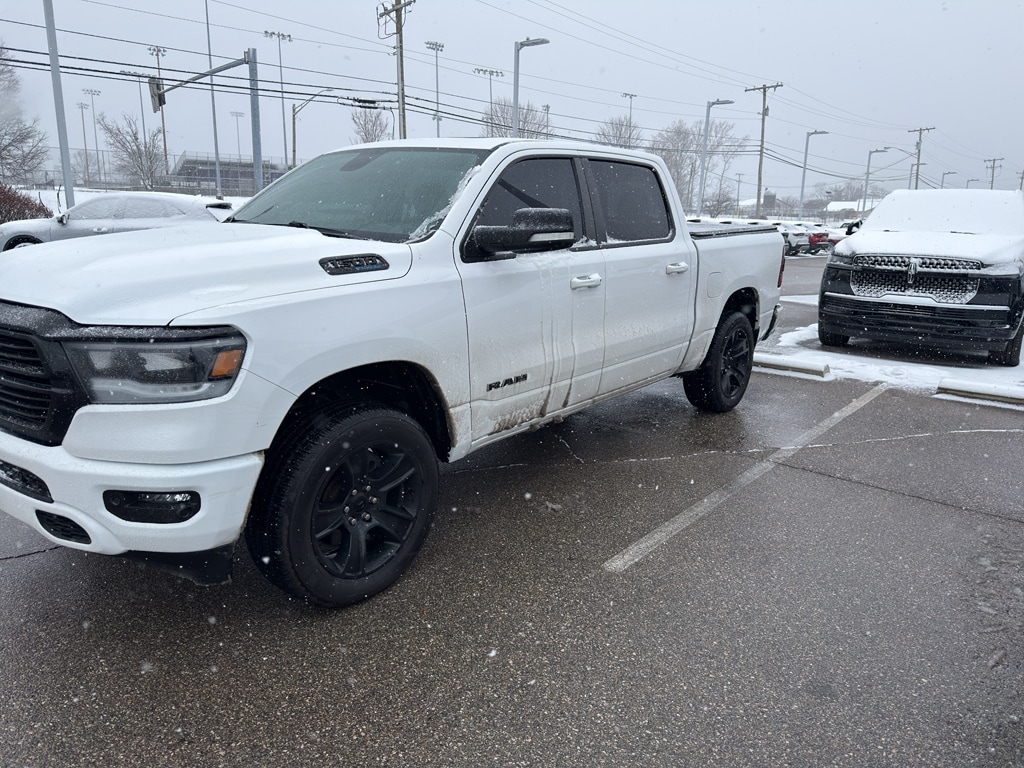 Fresh on the lot in Bloomington, IN â" a rugged and reliable 2021 Ram 1500 Big Horn with only 38,857 miles. This 4WD powerhouse is equipped with the legendary 5.7L V8 gasoline engine, delivering the torque and towing capability you need for work, weekend adventures, and everything in between. With a confident ride height and durable construction, the Big Horn blends comfort and capability in an attractive package. This Ram 1500 comes loaded with practical tech and convenience features: Navigation to keep you on course, Remote Start for warm or cool comfort before you climb in, and Hands Free Bluetooth to stay connected safely while driving. Back-Up Camera and Rear Parking Sensors make parking and hitching a trailer simple and stress-free. The cabin offers supportive seating and the thoughtful ergonomics Ram is known for, plus ample cargo and bed utility for gear and tools. Mileage is low for the year, condition is excellent, and this truck is priced to move â" it's the best price around for a 2021 Ram 1500 Big Horn with these specs in the area. Located in Bloomington, IN, this ready-to-drive 4WD V8 truck is ideal for drivers who want capability without compromise. Contact us to schedule a test drive and confirm availability â" this Big Horn won't last long at this price.