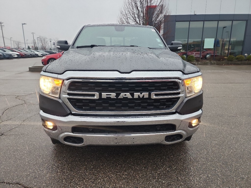 It comes equipped with Android Auto for seamless smartphone integration on the road. The state of the art park assist system will guide you easily into any spot. Never get into a cold vehicle again with the remote start feature on this 1/2 ton pickup. This Ram 1500 is pure luxury with a heated steering wheel. This vehicle is equipped with the latest generation of XM/Sirius Radio. This 1/2 ton pickup keeps you comfortable with Auto Climate. The Ram 1500 features a hands-free Bluetooth phone system. The satellite radio system in it gives you access to hundreds of nation-wide radio stations with a clear digital signal. Protect the vehicle from unwanted accidents with a cutting edge backup camera system. The vehicle offers Apple CarPlay for seamless connectivity. This model has four wheel drive capabilities. This Ram 1500 has a V8, 5.7L high output engine. This 2022 Ram 1500 projects refinement with a racy metallic gray exterior.